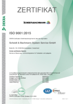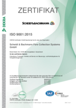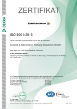 Die Zertifizierung von Scheidt & Bachmann ist für uns die formale Bestätigung unserer fortwährenden Bemühungen um höchste Qualität. Wir sind daher stolz, dass unser Qualitätsmanagementsystem im Jahr 2017 nach dem Standard ISO 9001:2015 erfolgreich zertifiziert wurde. Das entsprechende Zertifikat können Sie hier ansehen und herunterladen.