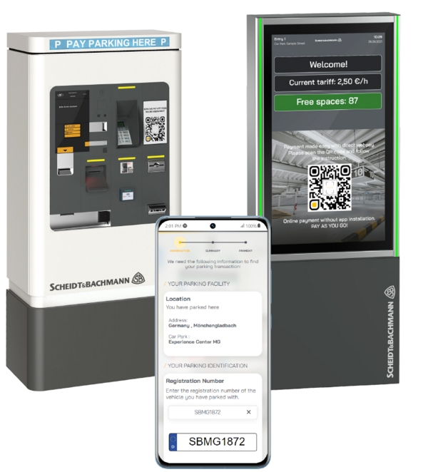 The entervo smart web pay web application is provided in responsive design and can be used via smartphone, tablet, laptop and screen. Online payments are made via the secure Scheidt & Bachmann Payment Gateway Service. As the provider, you don’t need to install additional hardware to implement this service. When your facility is running the latest version of entervo - as a Barcode or (hybrid)ticketless system and cameras for license plate recognition are installed, your system upgrade is just a few clicks away.