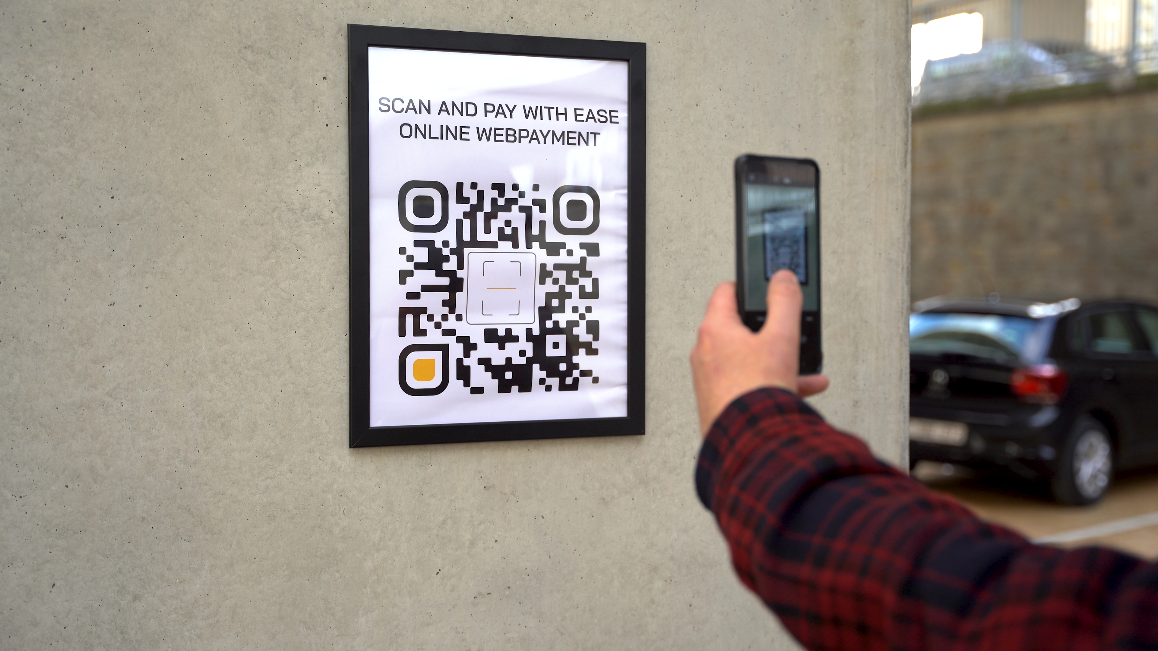 Offer your customers convenient access to the entervo smart web pay web application: A dynamic QR code is printed on the barcode ticket issued upon entry (including license plate information). You do not require your visitor to download an app, but simply let them scan a QR code with their smartphone. The visitor is directed to a secure payment page and then completes his/her parking transaction online and immediately receives his digital receipt.