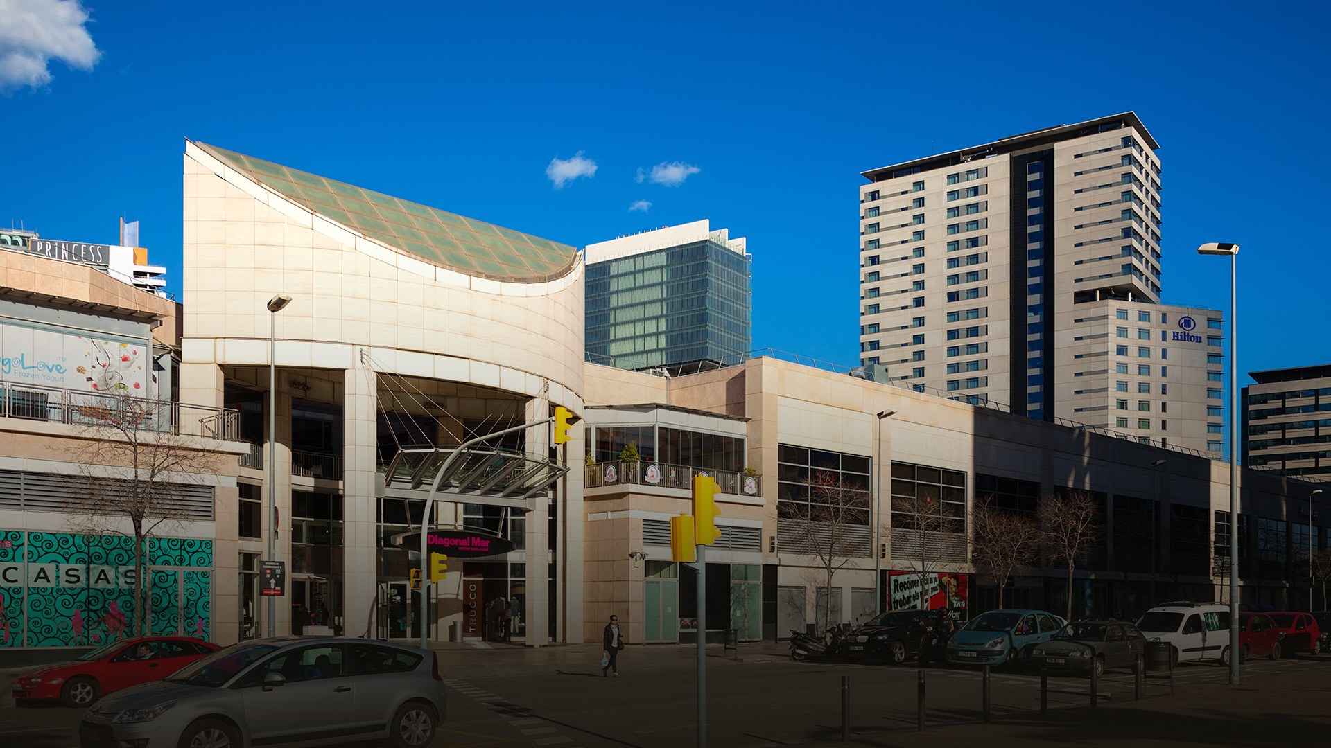 Diagonal Mar Shopping Centre is located in Barcelona. This shopping center is managed by CBRE and is one of the most emblematic spots of Spain, containing over 200 stores, an excellent selection of restaurants, 17 cinema halls, and a bowling alley, as well as a parking lot including 4.800 parking spaces spread over 5 floors.
