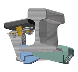 The axle sensor consists of 2 small induction loops which are integrated in a compact housing, which is screwed to the rail, and which is evaluated in an axle-sensitive manner on the basis of their longitudinal extension. The axle sensor is identical in terms of construction with that in the level crossing system BUES 2000.