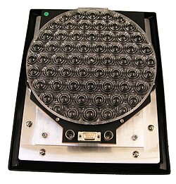 Available for supplementary signals is an 80 mm LED optical system. This can be used, for example, for replacement, light barricade- and mini-signals. These are also actuated by a LSS-BG via the SCAN-Bus per telegram with each optical system being equipped with a safe processor for actuation and monitoring of the particular light point. The 80 mm light point consists of 32 LEDs, each having a separate lens. The LEDs are monitored and actuated in 4 chains, each of 8 LEDs.