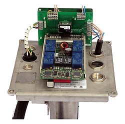 Actuation of the signals are controlled via a safe electronic subassembly, called LSS-BG (Light-Signal-Control Subassembly), which is installed at each main signal location. This subassembly is connected to the safe interlocking level on the EBUS (element bus executed as CAN-bus) and transmitted the data for the signal aspects which are to be displayed. The LSS-BG communicates via SCAN (SignalCAN bus) with the safe processors of the individual LED light points of the main and advance signals and ? in so far as these are present ? with the auxiliary signals and universal matrix displays at the location of the specific signal. Here are the individual light points merged together in a logical signal group and will be actuated via the SCAN bus communication per telegram. It is possible to connect additionally intermittent automatic train running control magnetic (PZB-Magnete) with 500/1000/2000Hz at LSS-Subassembly or PZB-Subassembly, too.